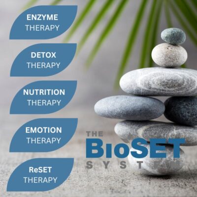 The BioSET System’s collection of foundational healing: Detoxification, Enzyme, Nutrition, and ReSET Therapy are carefully balanced to restore true foundational health.